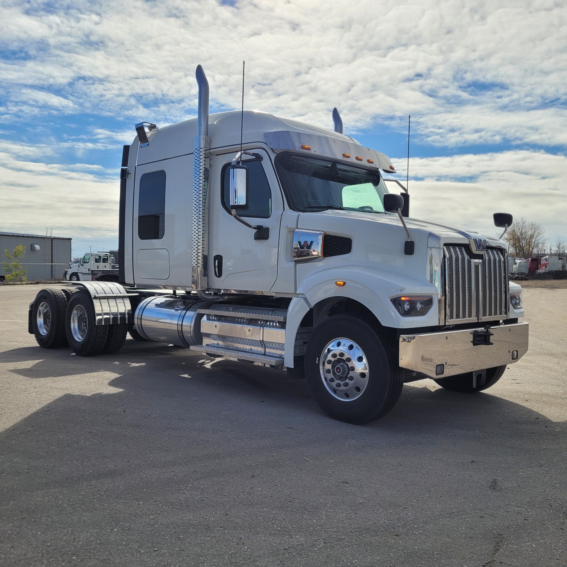 Dual Exhaust, Stainless Steel Half Fenders, Center Tow Pin, Polished Exterior Package, 4 Way Lockers on Separate Switches, Stainless Roof Mounted Lighting Brackets, Alcoa Wheels, Keyless Entry, Heated LED Headlights, Western Star 22x31.5 Double Bunk Windows.